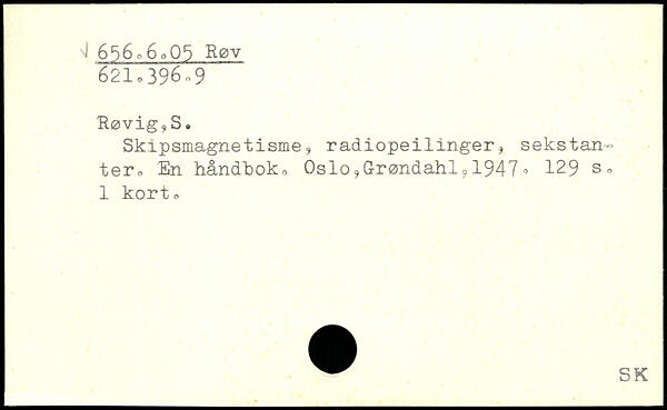 ‘RøvigjS. Skipsmagnetisme, radiopeilinger, sekstantero En håndboko Oslo,Grøndah191947