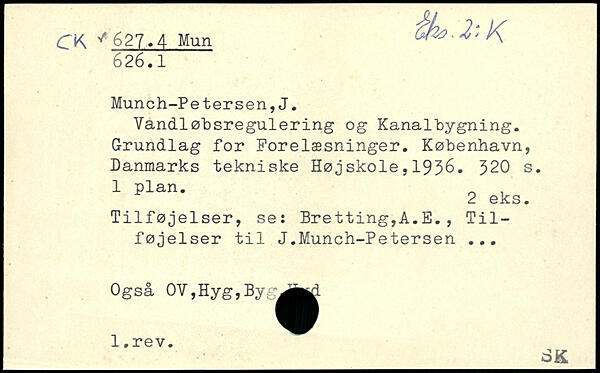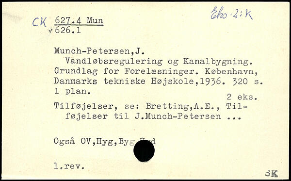Munch-Pe tersen,J. Vandløbsregulering og Kanalbygning. Grundlag for Forelæsninger.