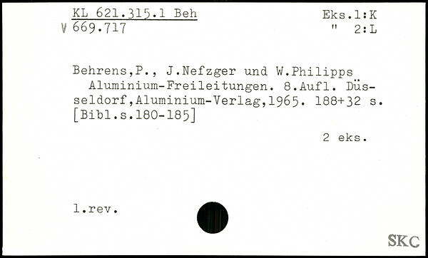 Behrens,?., J.Nefzger und W.Philipps Aluminium-Freileitungen.