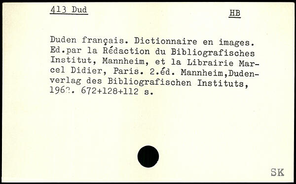 Duden français. Dictionnaire en images. Ed.par la Rédaction du Bibliografisches Institut, Mannheim, et la Librairie Marcel Didier, Paris.