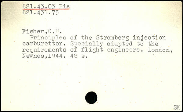 Fisher, C. II. Principles of the Strömberg injection carburettor. Specially adapted to the requirements of flight engineers.
