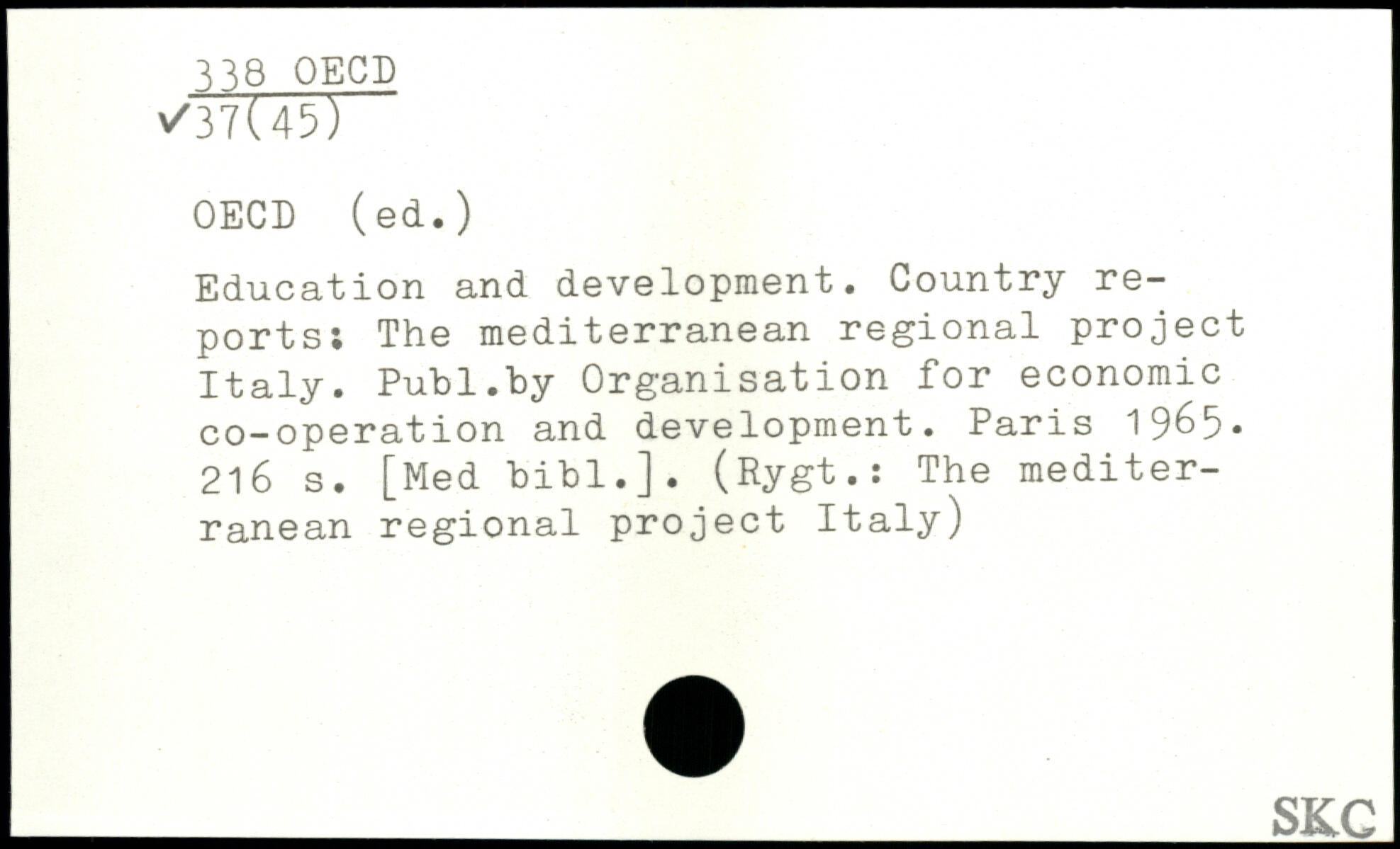 Education and development. Country reports: The mediterranean regional project Italy.