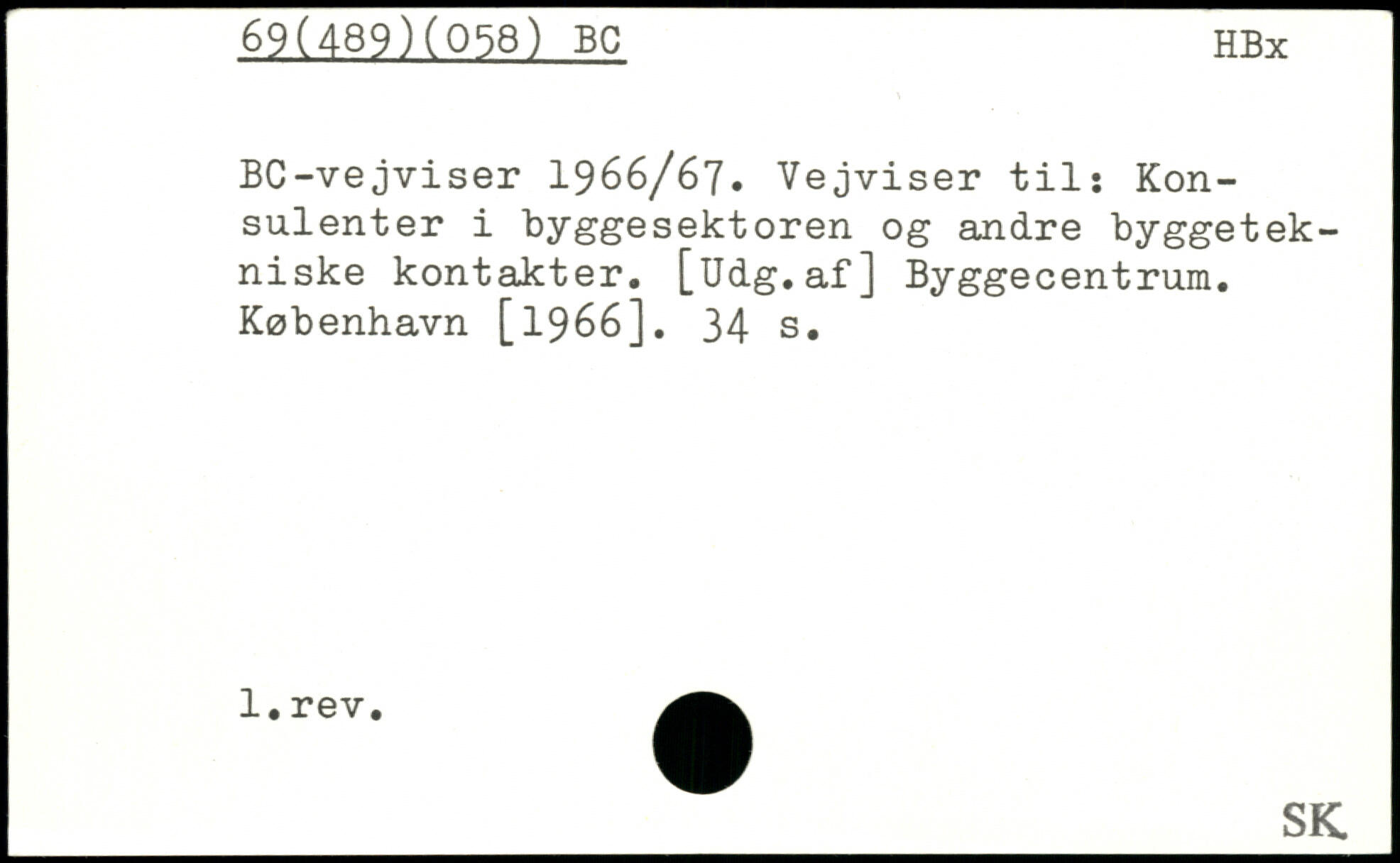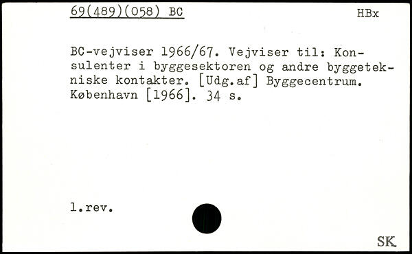 BC-vejviser 1966/67. Vejviser til: Kon-sulenter i byggesektoren og andre byggetekniske kontakter. [Udg.af] Byggecentrum.