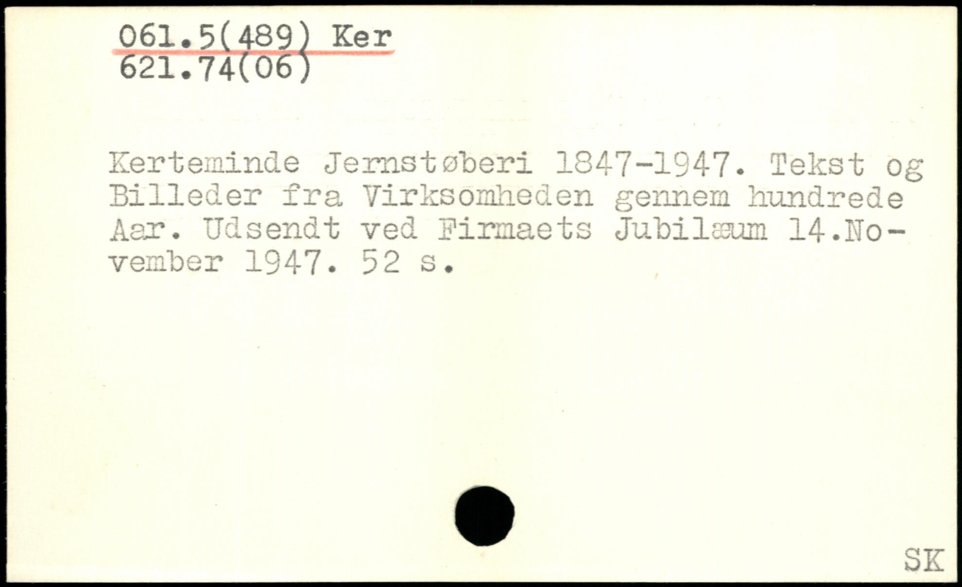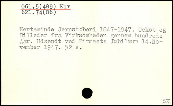 Kerteminde Jernstøberi 1847-1947. Tekst og Billeder fra Virksomheden gennem hundrede Aar. Udsendt ved Firmaets Jubilæum 14.november 1947.