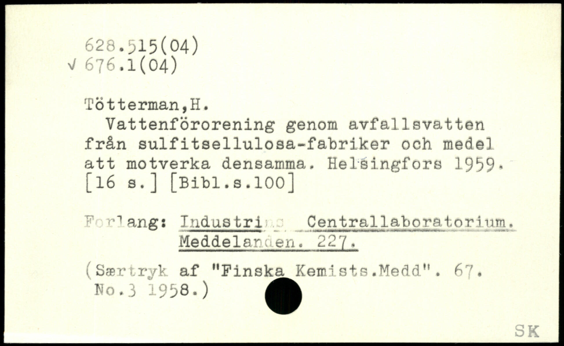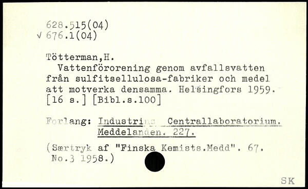 Vattenförorening genom avfall svatten från sulfitsellulosa-fabriker och medel att motverka densamma.