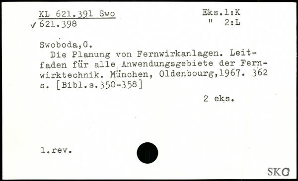 Lie Planung von Fernwirkanlagen. Leitfaden für alle Anwendungsgebiete der Fernwirktechnik. München, Oldenbourg,196?.