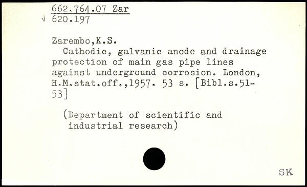 Cathodic, galvanic anode and drainage protection of main gas pipe lines against underground corrosion. London, H.M.stat.off.,1957-