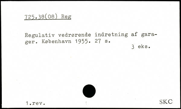 Regulativ vedrørende indretning af garager.