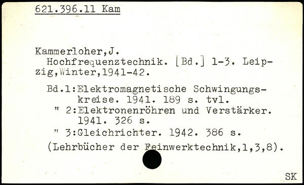 Hochfrequenztechnik. (_Bd. j 1-3, Leipzig, Winter,19 41-4 2.