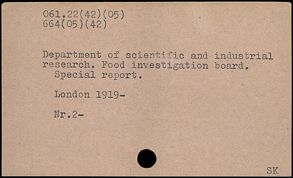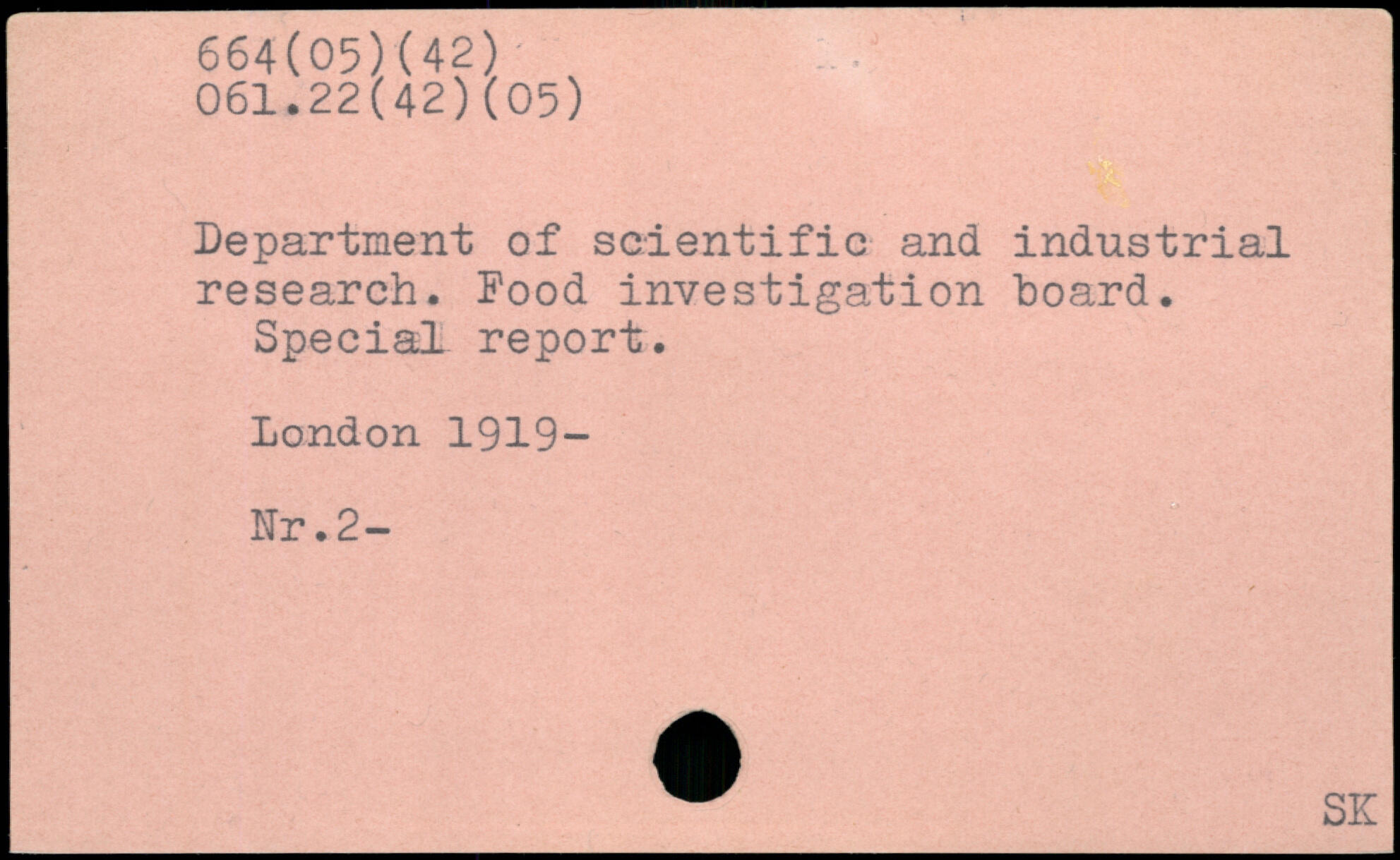 Department of scientific and industrial research. Pood investigation board. Special report.