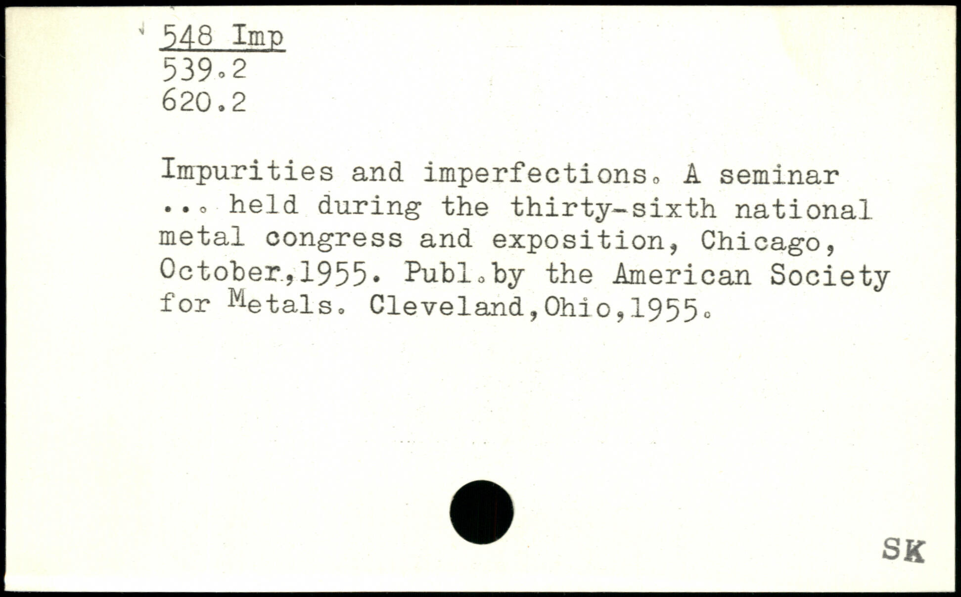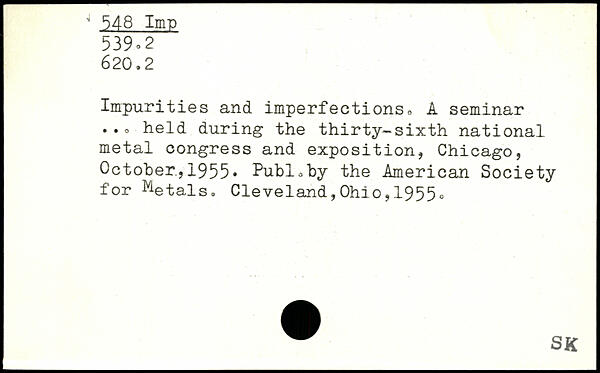 Impurities and imperfections, A seminar ..o held during the thirty-sixth national metal congress and exposition