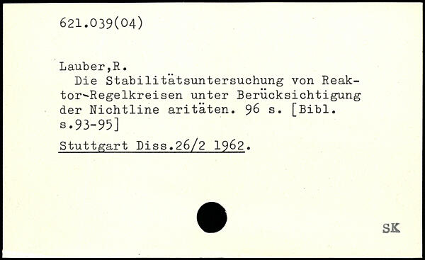 Die Stabilitätsuntersuchung von Reak-tor^Regelkreisen unter Berücksichtigung der Nichtline aritäten.