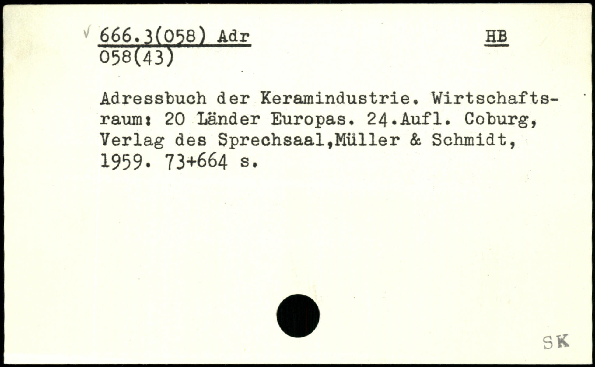 Adressbuch der Keramindustrie. Wirtschafts-raum. 20 Länder Europas