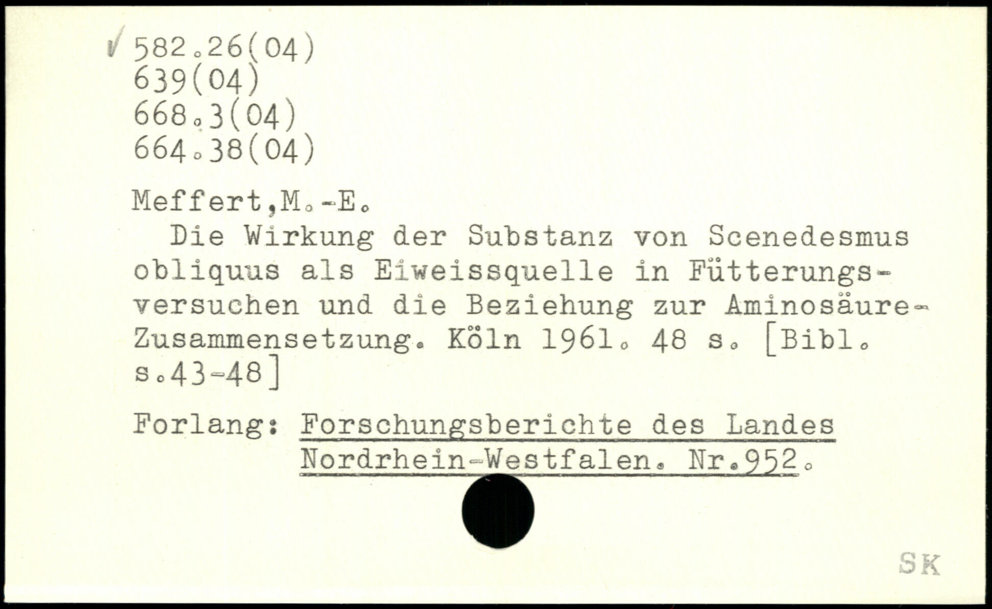 Die Wirkung der Substanz von Scenedesmus obliquus als Eiweissquelle in Fütterungs-Versuchen und die Beziehung zur Aminosäure-Zusammensetzung.