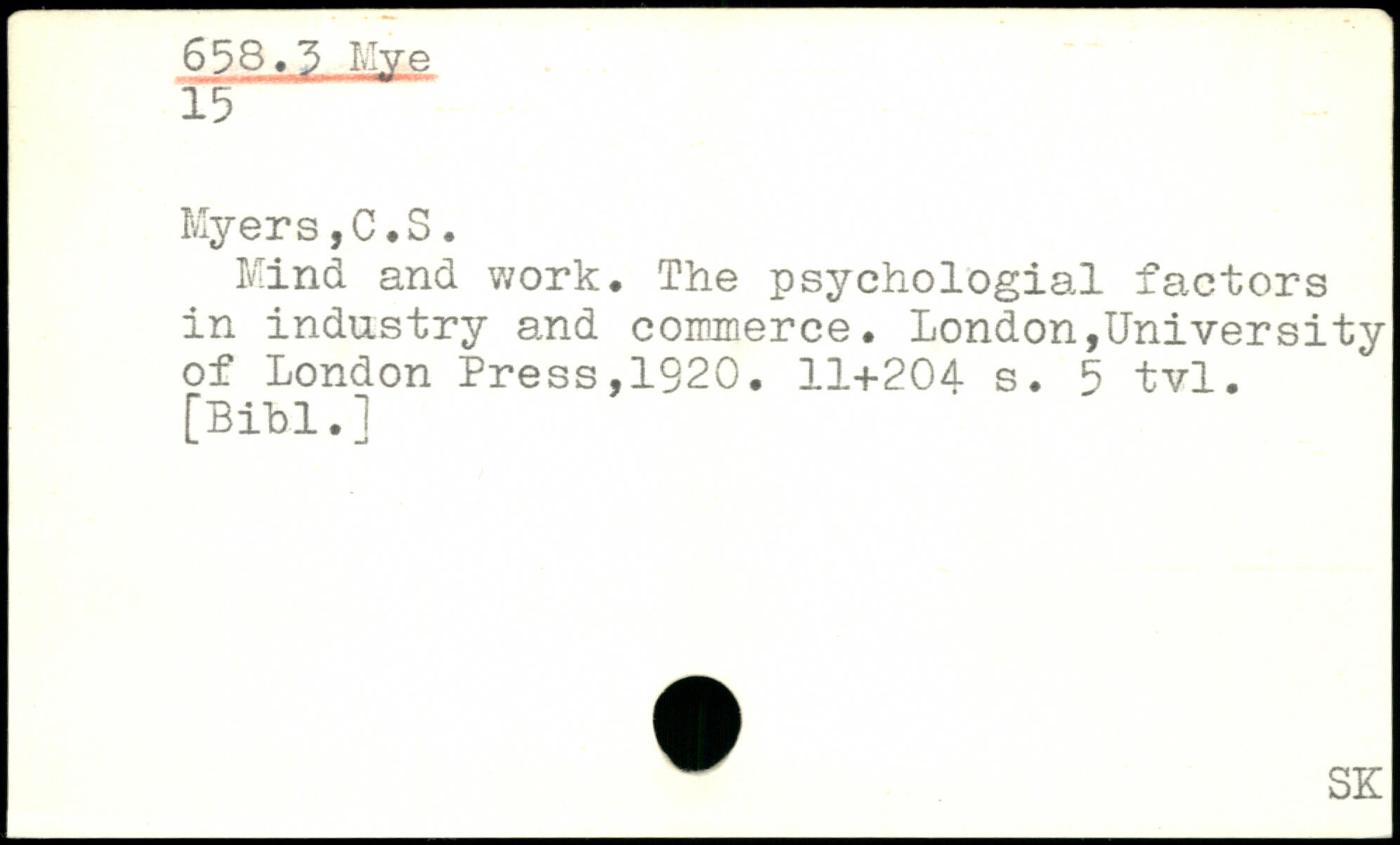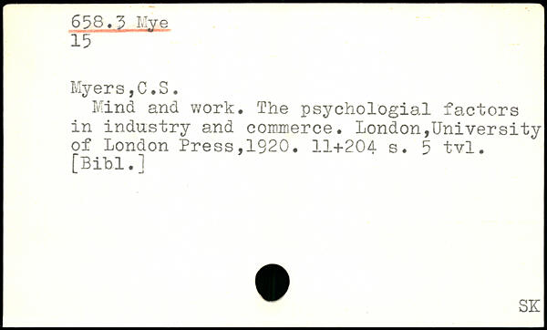 Mind and work. The psychologial factors in industry and commerce. London,University of London Press, 1S20. 11+204. s. 5 tvl.