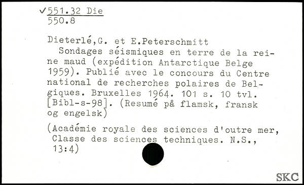 Sondages séismiques en terre de la reine maud (expédition Antarctique Belge 1959). Publié avec le concours du Centre national de recherches polaires de Bel-giques.