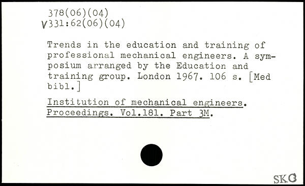 Trends in the education and training of professional mechanical engineers. A symposium arranged by the Education and training group.