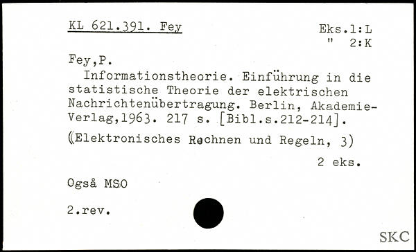 Informationstheorie. Einführung in die statistische Theorie der elektrischen Nachrichtenübertragung.