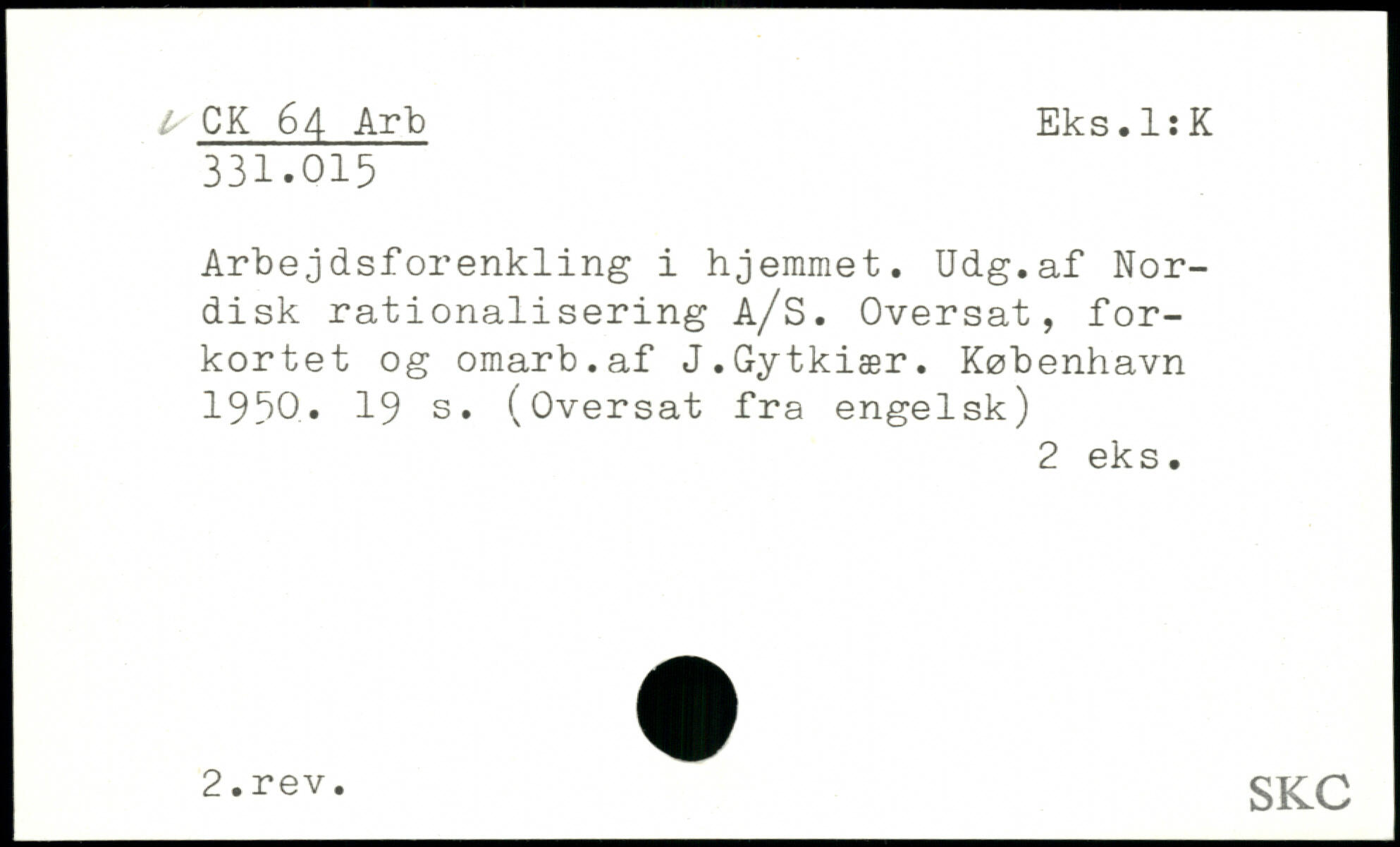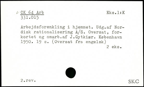 Arbejdsforenkling i hjemmet. Udg.af Nordisk rationalisering å/S. Oversat, forkortet og omarb.af J.Gytkiær.