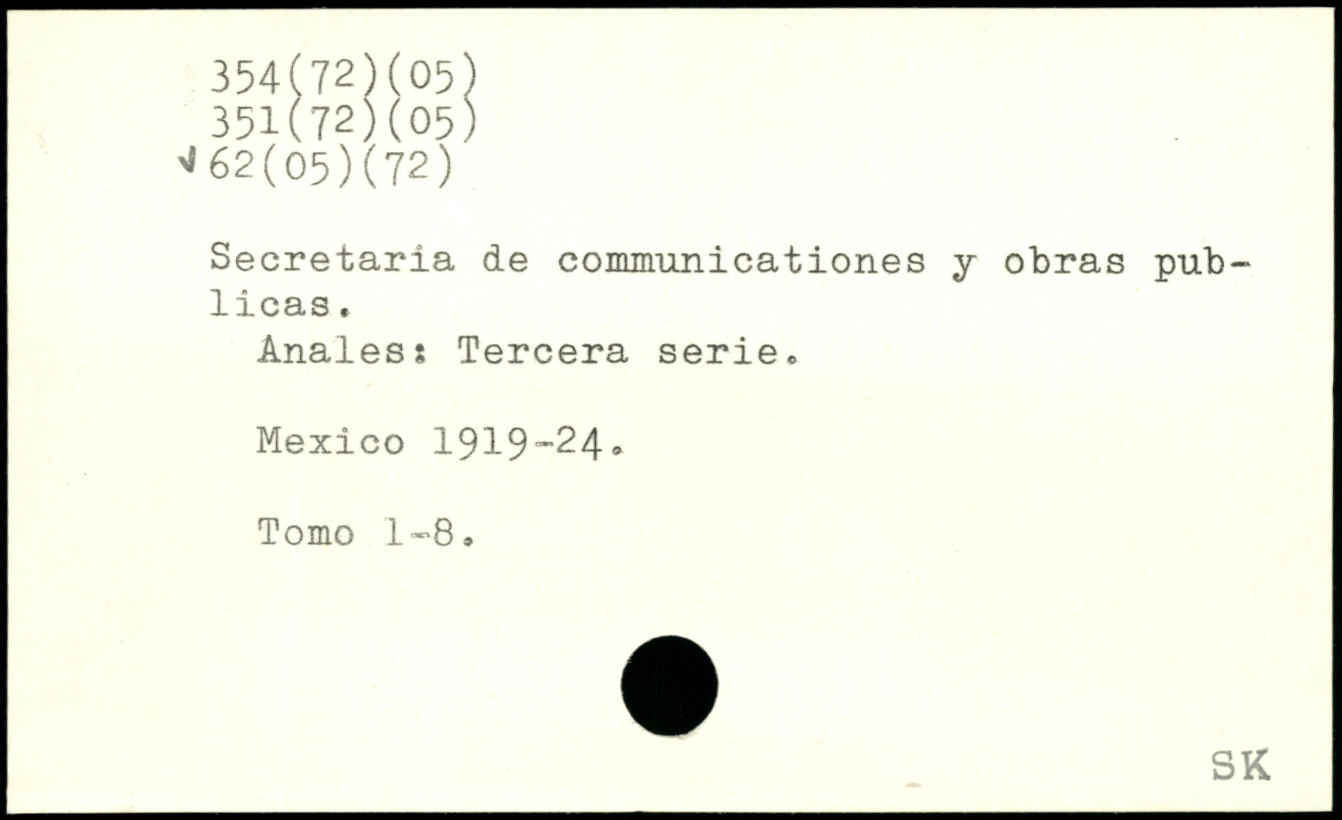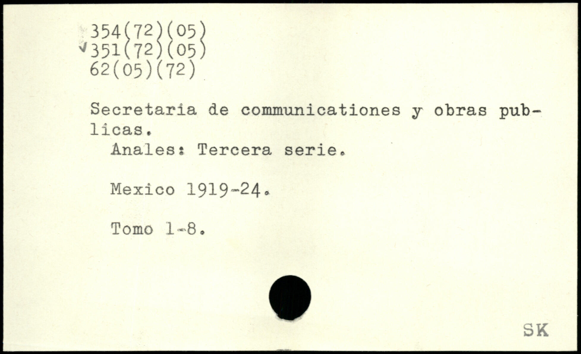 Secretaria de communicationes y obras pub- licas. Anales s Tercera serie. Mexico 1919-24. Tomo 1-8.