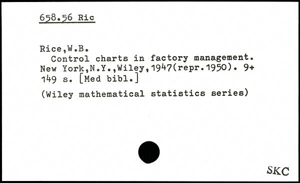 Control charts in factory management. New York,N.Y.,Wiley,19.+7(repr.1950). 9+ 1^
