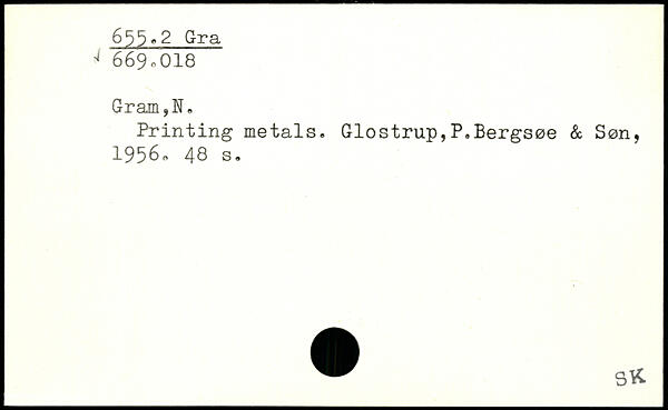 Printing metals. Glostrup,P.Bergsøe & Søn, 19560