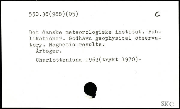 Det danske meteorologiske institut. Publikationer. Godhavn geophysical observatory. Magnetic results. Årbøger. Charlottenlund 1963(trykt 1970)-
