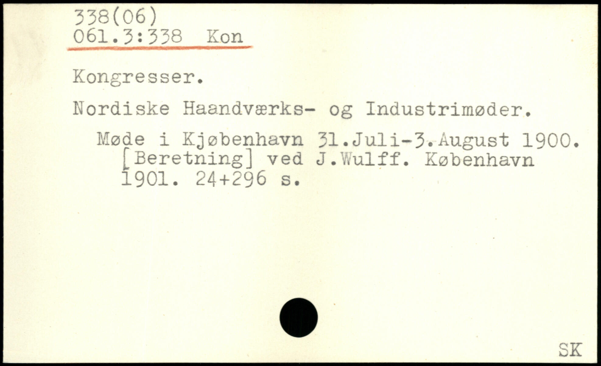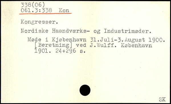 Nordiske Haandværks- og Industrimøder. Møde i Kjøbenhavn 31.Juli-3.August 1900. [Beretning] ved J.Wulff.