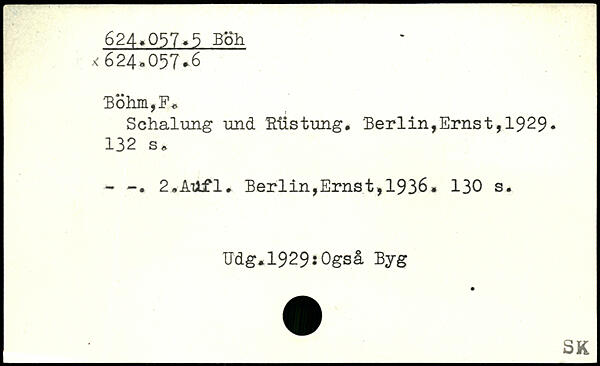 Schalung und Rüstung, Berlin,Ernst,1929. 132 s, - 2,AtLfl. Berlin,Ernst,1936, 130 s, Udg,1929iOgsä Byg