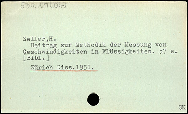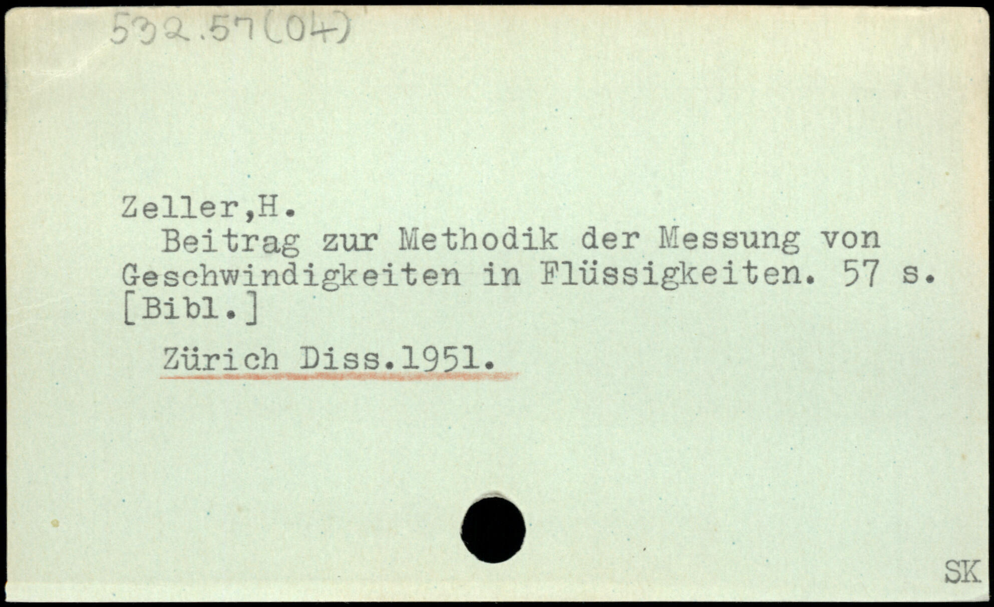 Beitrag zur Methodik der Messung von Geschwindigkeiten in Flüssigkeiten.