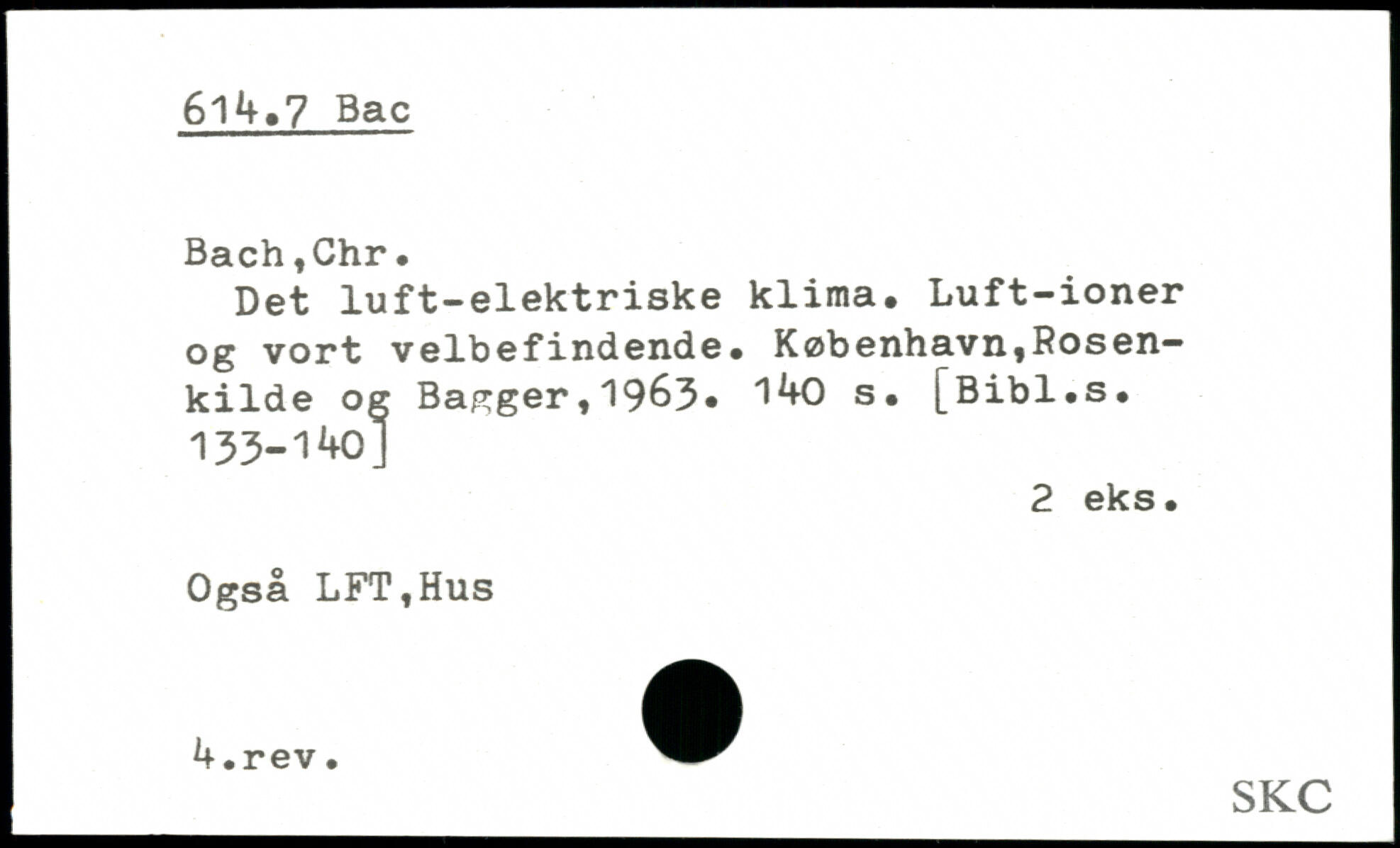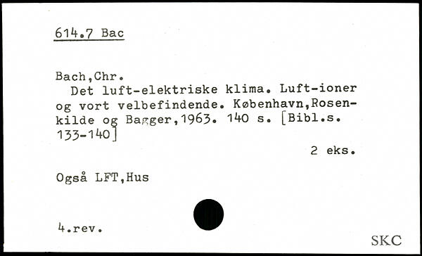 Det luft-elektriske klima. Luft-ioner og vort velbefindende. København,Rosen— kilde og Bagger11963. 1^