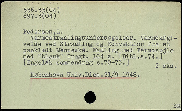 Varmestraalingsunders øgeiser. Varme afgivelse ved Straaling og Konvektion fra et paaklædt Menneske. Maaling med Termosøjle med ”blank” Tragt.