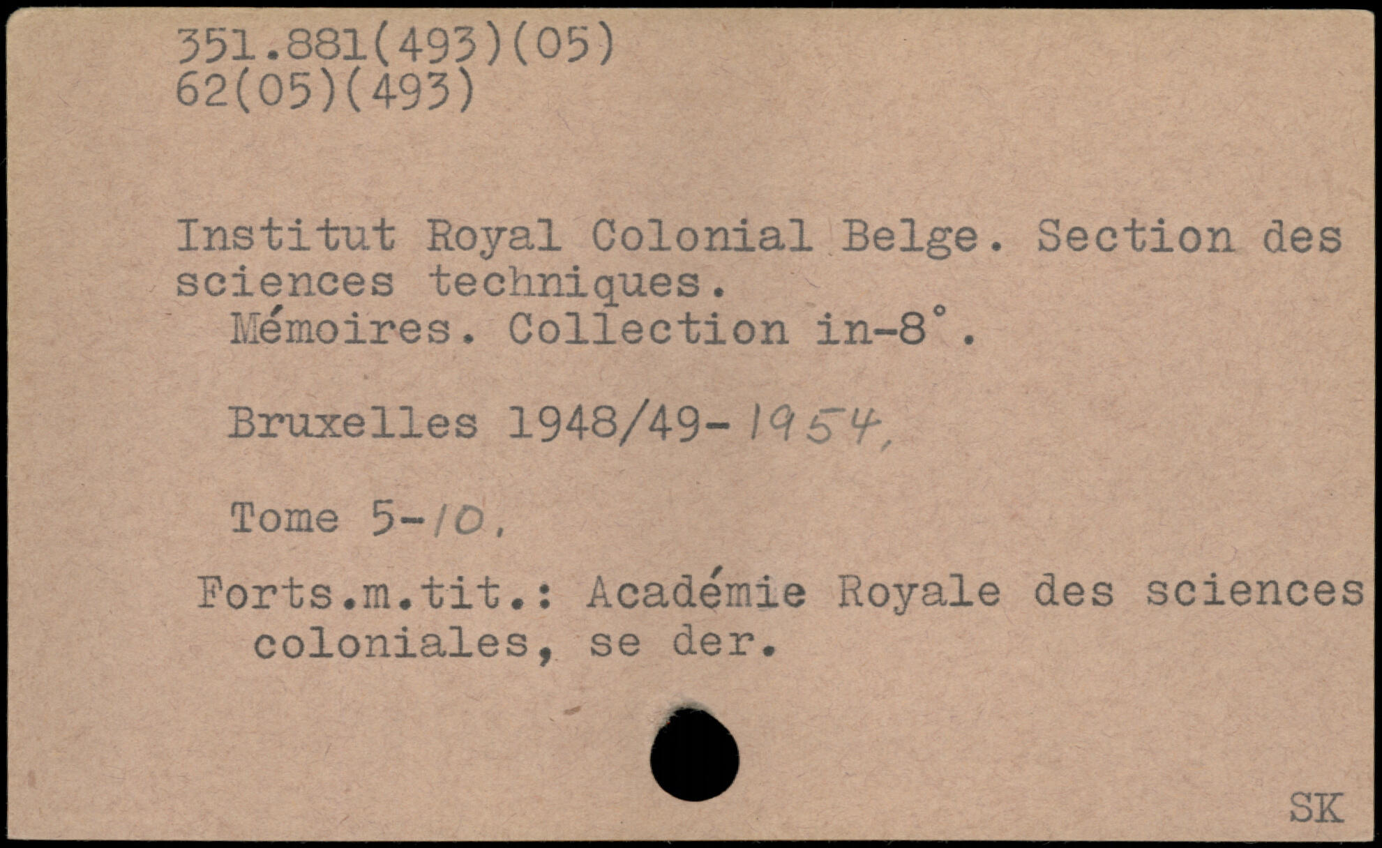 Institut Royal Colonial Belge. Section des sciences techniques. Mémoires. Collection in-8..