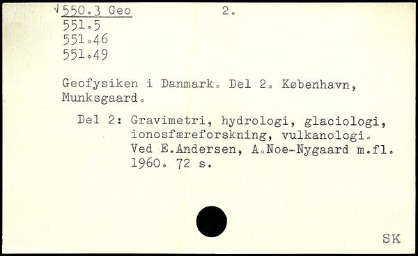 Geofysiker! i Danmark. Del 20 København, Munksgaardo Del 2: Gravimetri, hydrologi, glaciologi, ionosfæreforskning, vulkanologi. Ved E.Andersen, AoNoe-Nygaard m.fl. 1960