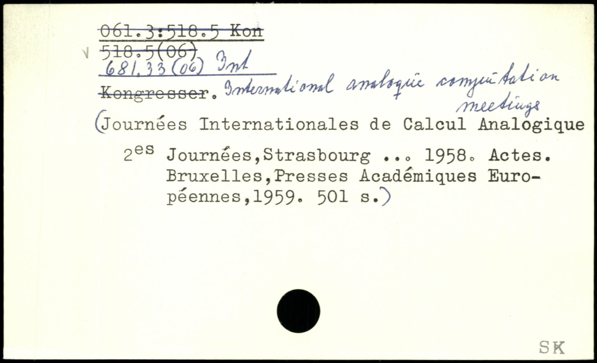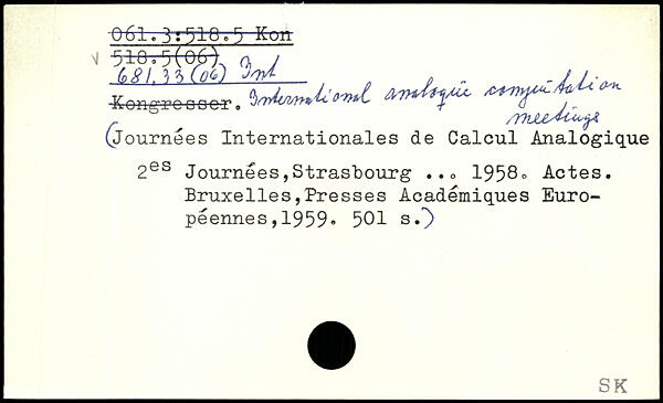 kXIAhCüï) .rrt_. , Il. -Kongroooer. !,nUtyu. ,rhJLeAt<~ÿ. (journées Internationales de Calcul Analogique 2es Journées,Strasbourg .. o 1958', Actes.