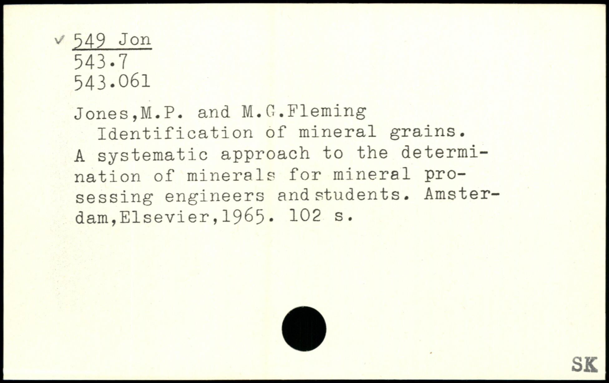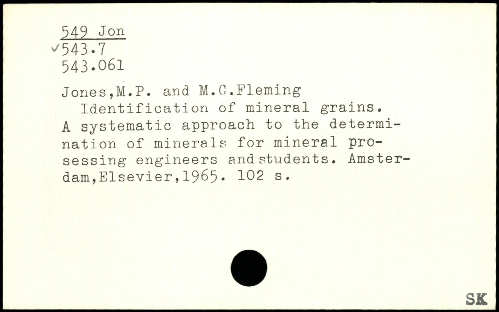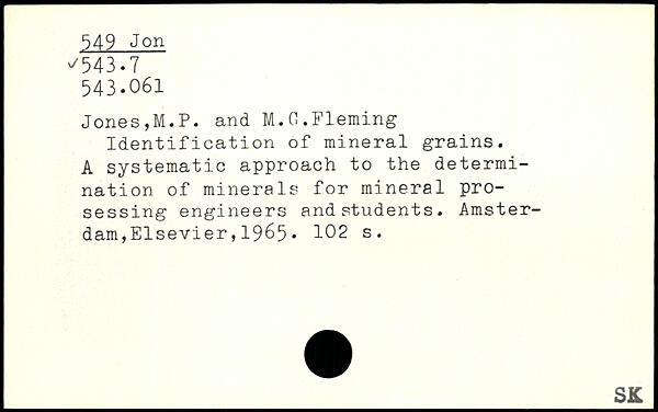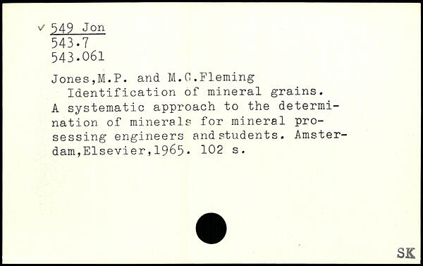 Identification of mineral grains. A systematic approach to the determination of minerals for mineral pro-sessing engineers and students.