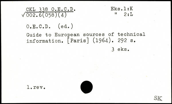 Guide to European sources of technical information. [Paris] (1964)