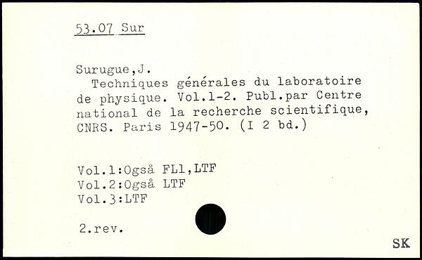 Techniques générales du laboratoire de physique.