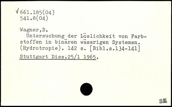 Untersuchung der Löslichkeit von Farbstoffen in binären wässrigen Systemen. (Hydrotropie).