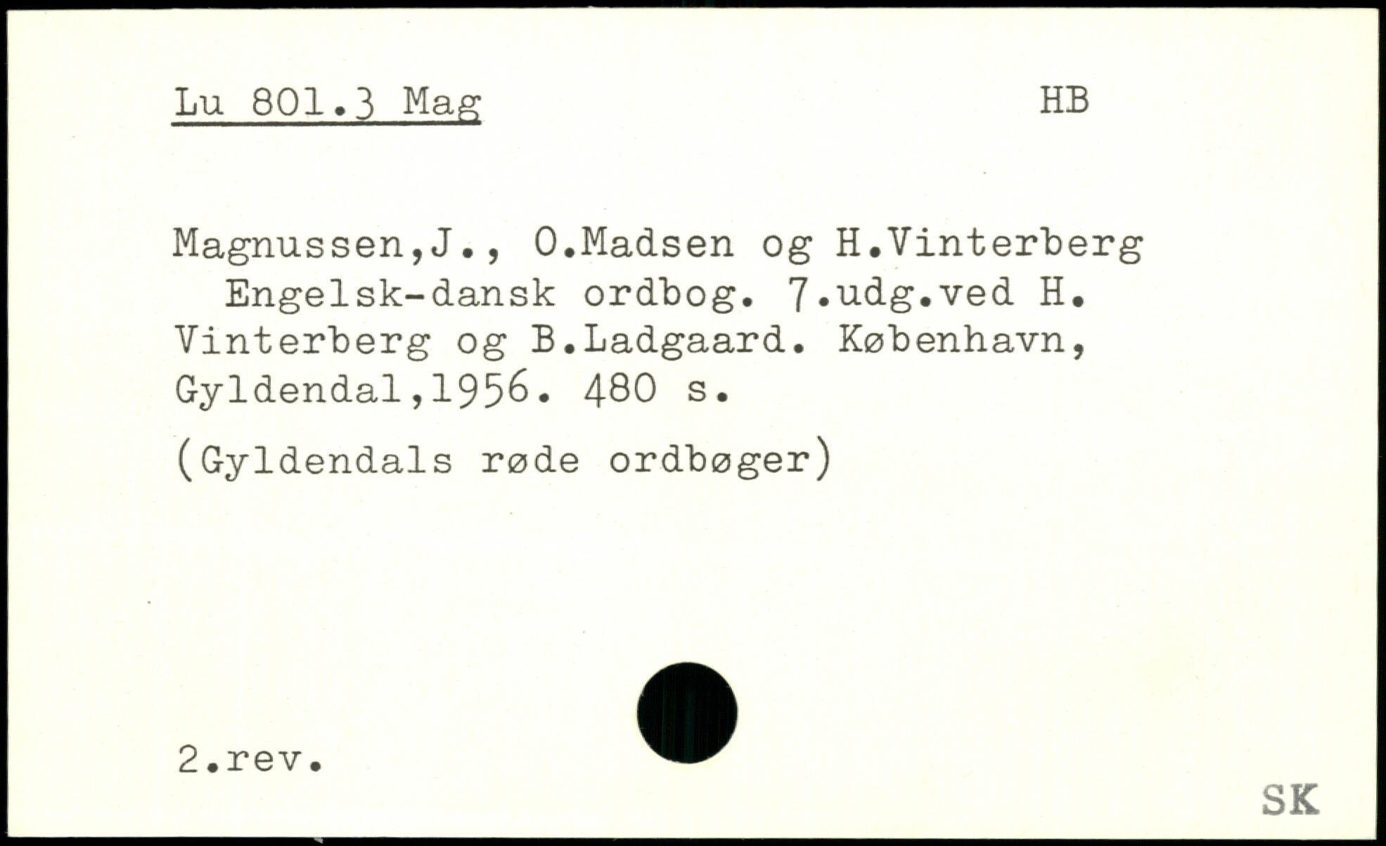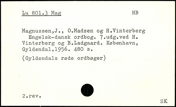 Magnussen,J., 0.Madsen og H.Vinterberg Engelsk-dansk ordbog. 7,udg.ved H. Vinterberg og B.Ladgaard.