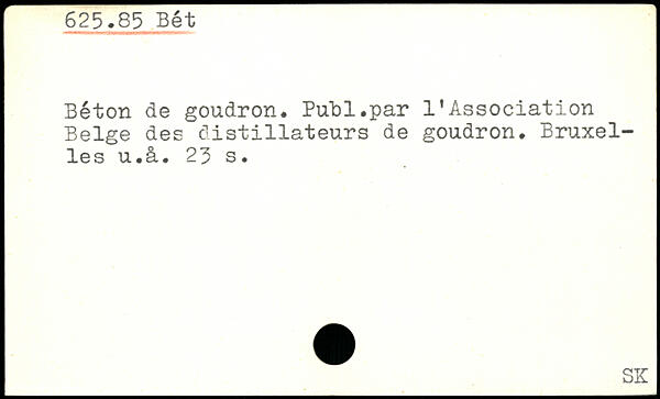 Béton de goudron. Publ.par l’Association Belge des distillateurs de goudron. Bruxelles u.â.