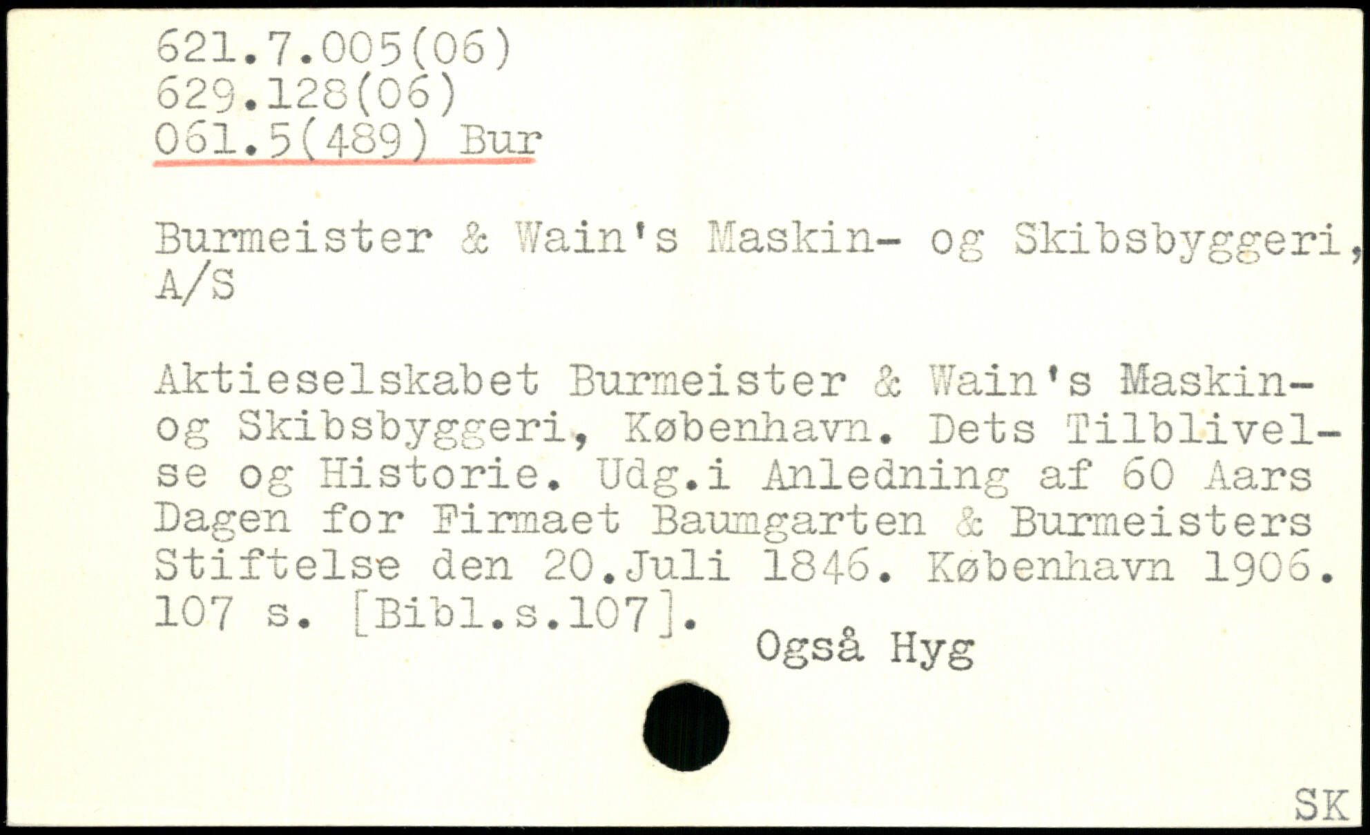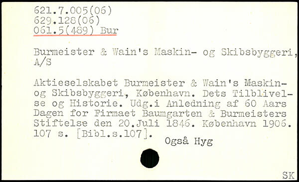 Burmeister & Wain's Maskin- og Skibsbyggeri, A/S Aktieselskabet Burmeister & Wain's Maskin-og Skibsbyggeri, København. Dets Tilblivelse og Historie. Udg.i Anledning af 60 Aars Dagen for Firmaet Baungarten <1 Burmeisters Stiftelse den 20.Juli 1846.