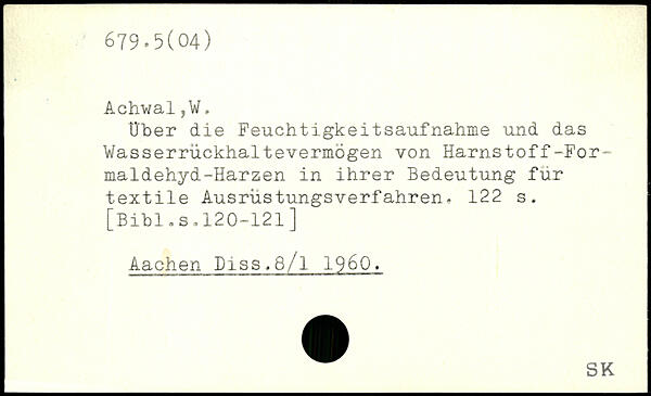 Über die Feuchtigkeitsaufnahme und das Wasserrückhaltevermögen von Harnstoff-Formaldehyd -Harzen in ihrer Bedeutung für textile Ausrüstungsverfahren.