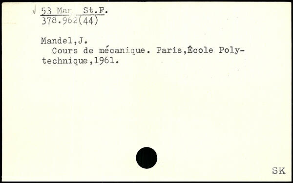 Cours de mécanique. Paris,École Polytechnique ,1961.