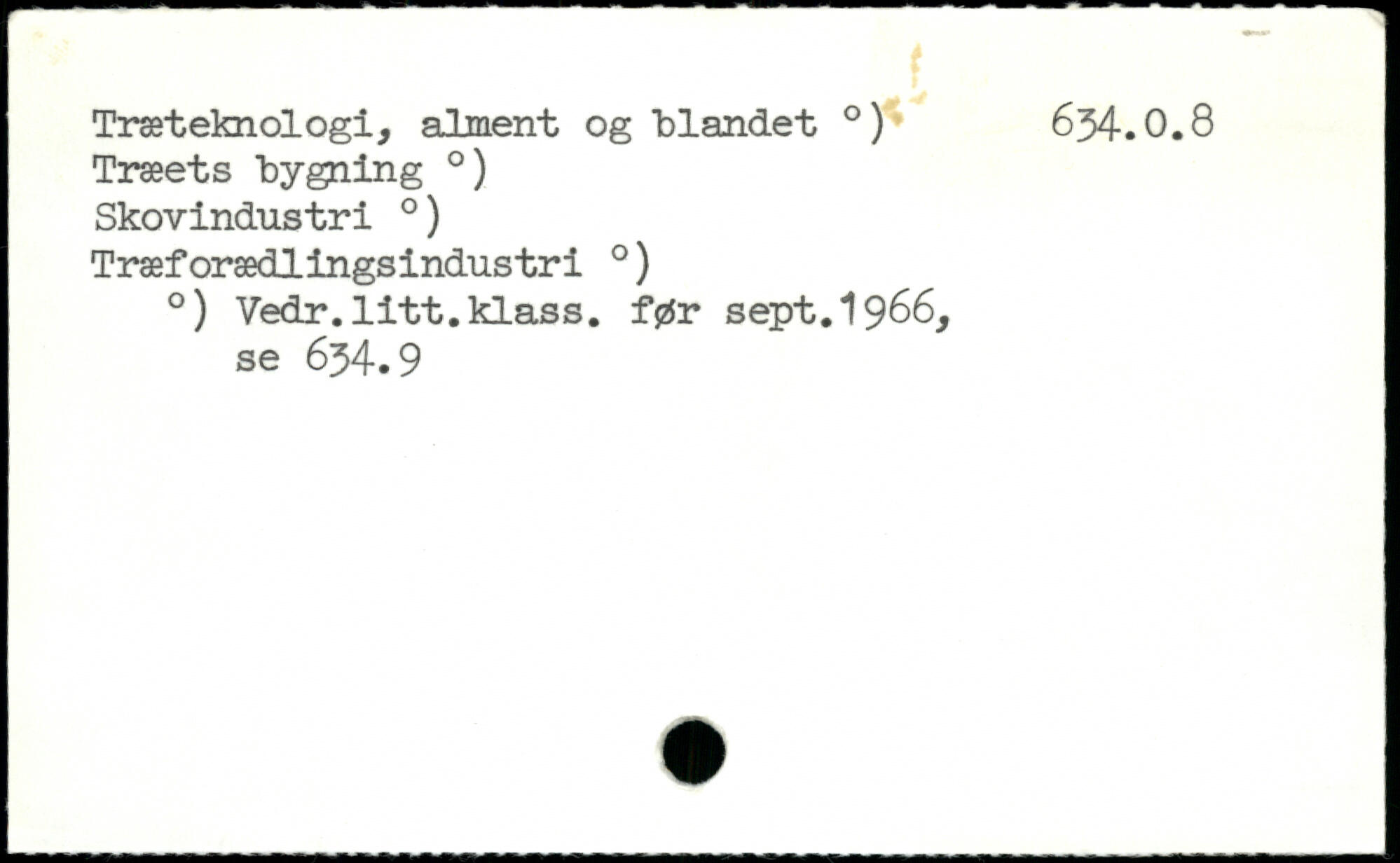 Træteknologi, alment og "blandet .) 634.0.8 Træets bygning .) Skovindustri .) Træforædlingsindustri .) .) Vedr.litt.klass. før sept.1966, se 634.9