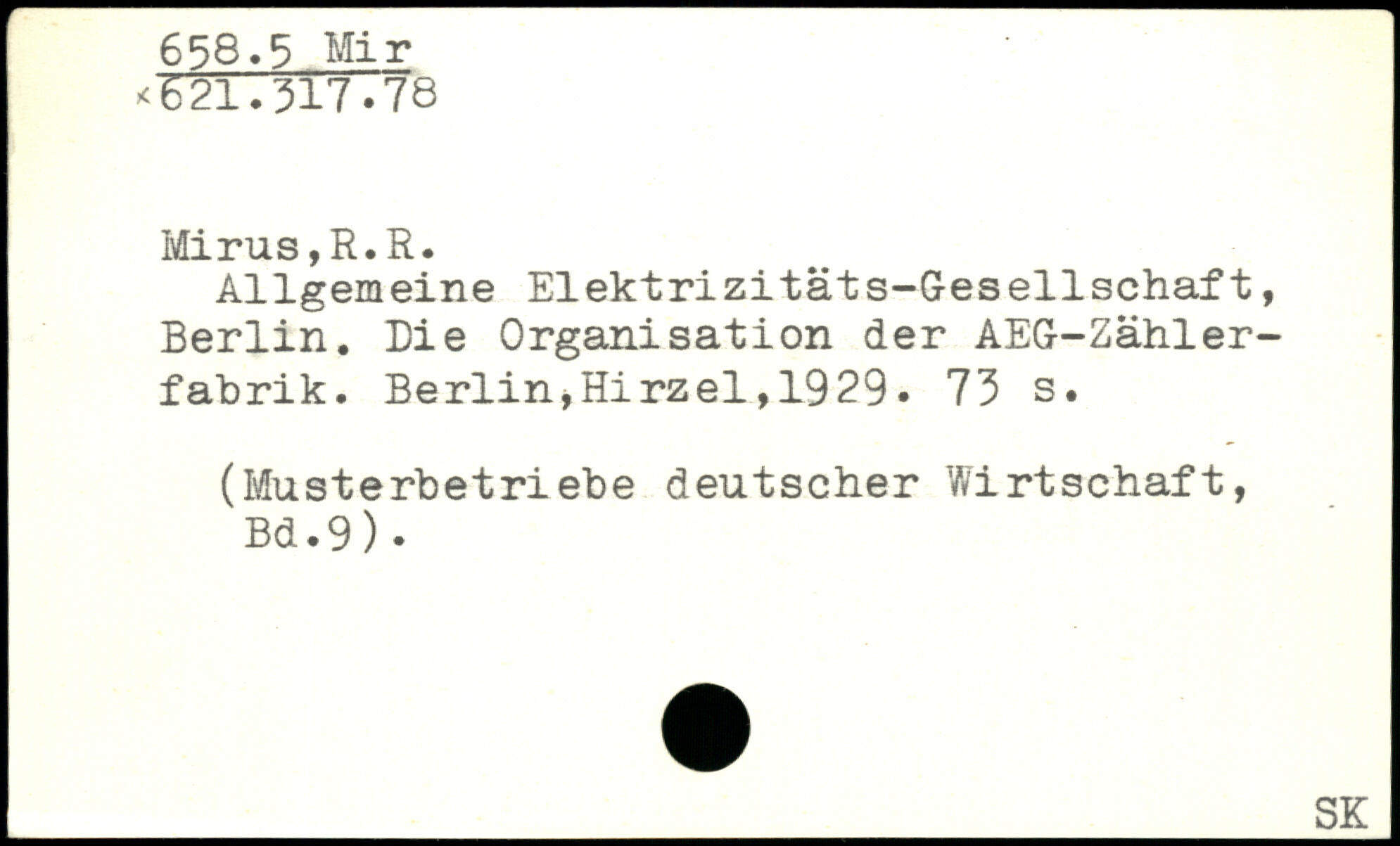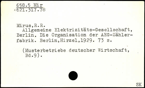 Allgemeine Elektrizitäts-Gesellschaft, Berlin. Die Organisation der AEG-Zähler-fahrik.