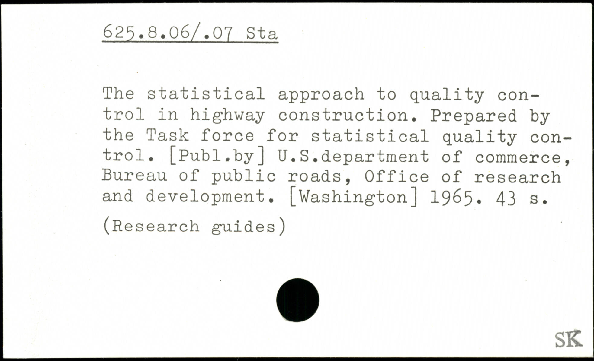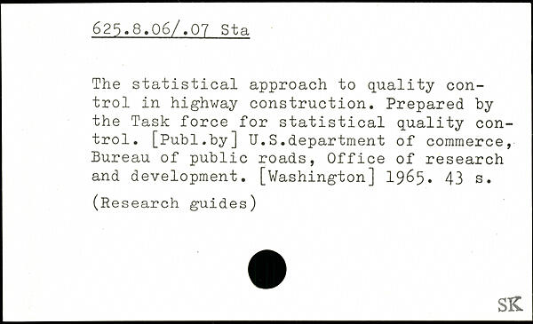 The statistical approach to quality control in highway construction. Prepared by the Task force for statistical quality control.