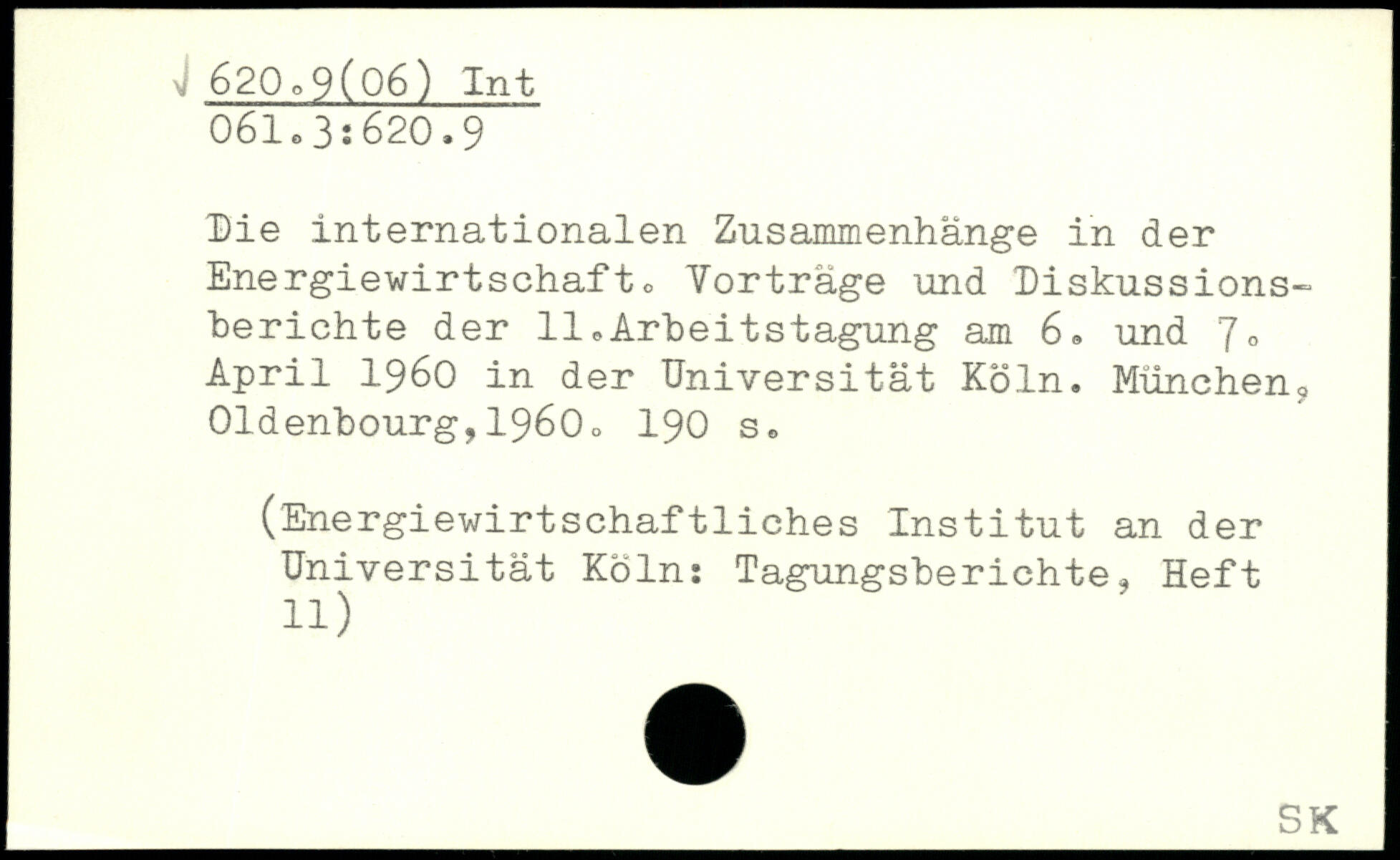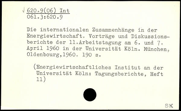 Die internationalen Zusammenhänge in der Energiewirtschafto Yortrage und Diskussions-berichte der 11 ,Arbeitstagung am 6® und 7. April 1960 in der Universität Köln.