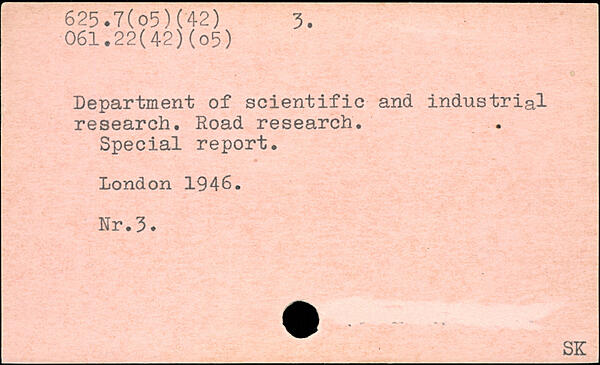 Department of scientific and industrial research. Road research. Special report