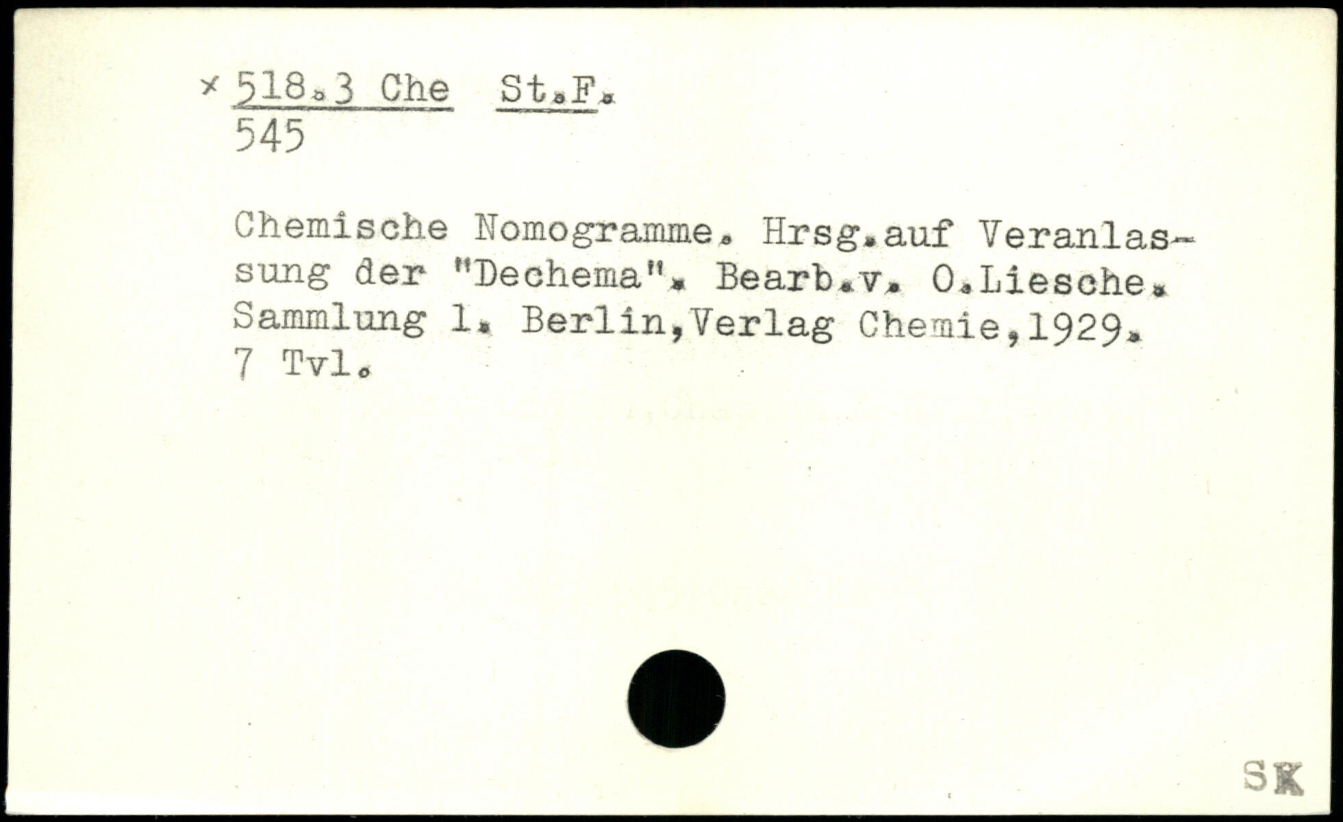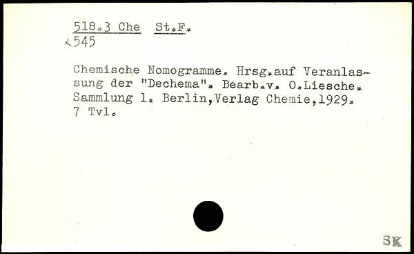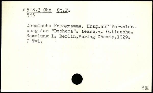Chemische Nomogramme. Hrsg.auf Veranlassung der "Dechema". Bearb.v, 0.Liesche. Sammlung 1